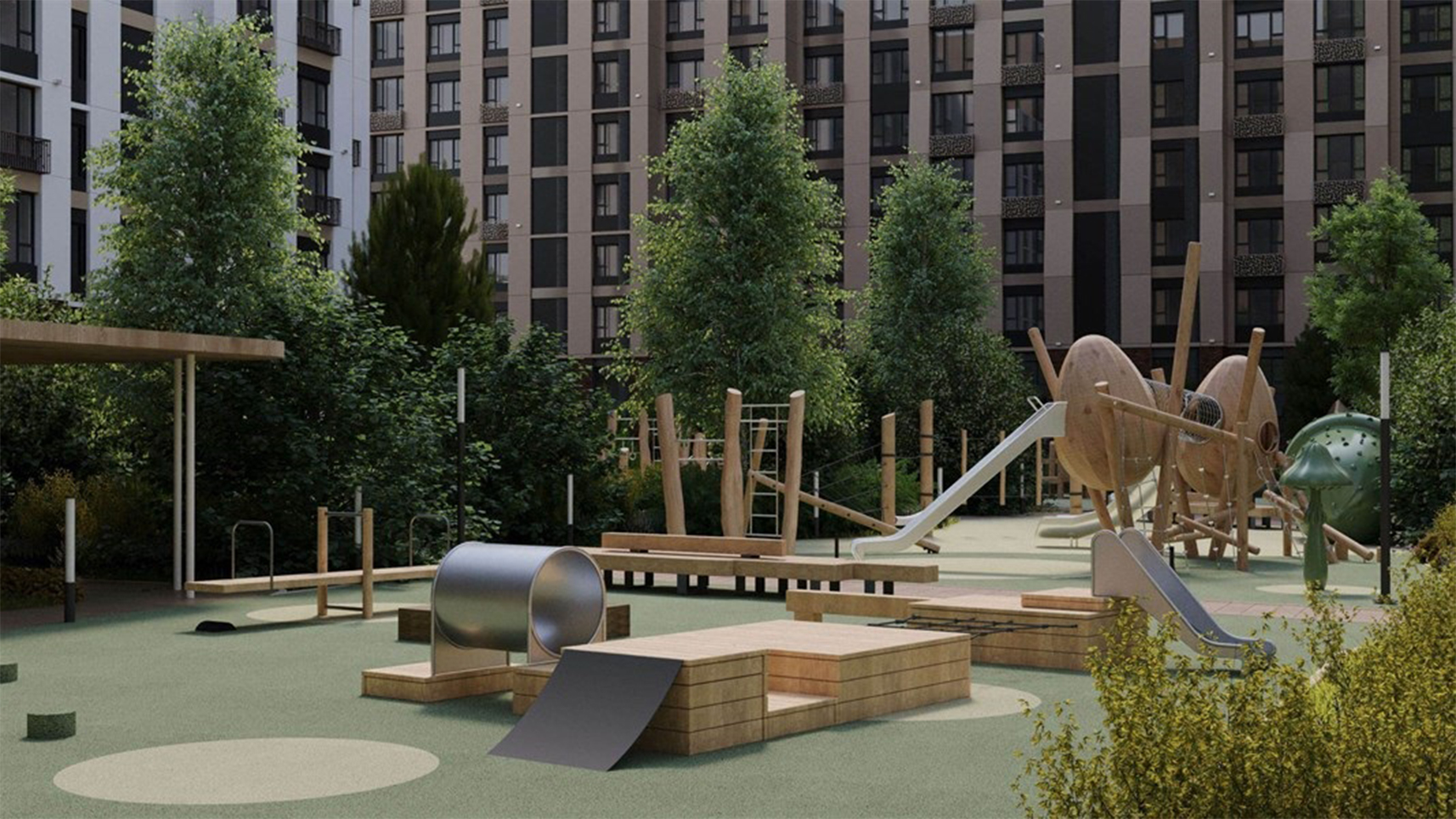 В «Гренландии» каждый двор — с собственной концепцией: «Лес», «Долина», «Айсберг» и другие. Детские площадки, оформление фасадов, озеленение — всё подчинено выбранной теме. Это не просто новостройка, а целый мир, где можно выбрать атмосферу «своего» дома.