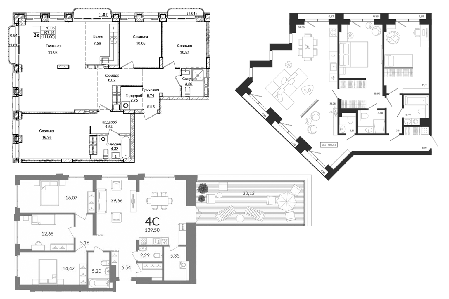 — мастер-спальни с отдельным санузлом,