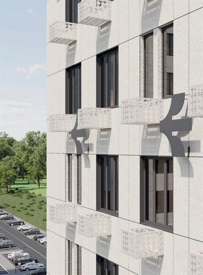 Проект включает 4 очереди, каждая из которых состоит из 2–3 домов. Здания имеют переменную этажность 10–15 этажей и выполнены по панельной технологии. Фасады отделаны мокрой штукатуркой и дополнены ночной подсветкой. Внутри предусмотрены пассажирский и грузовой лифты. Акцентные входные группы выполнены из металлокаркаса в форме бумажного самолетика.