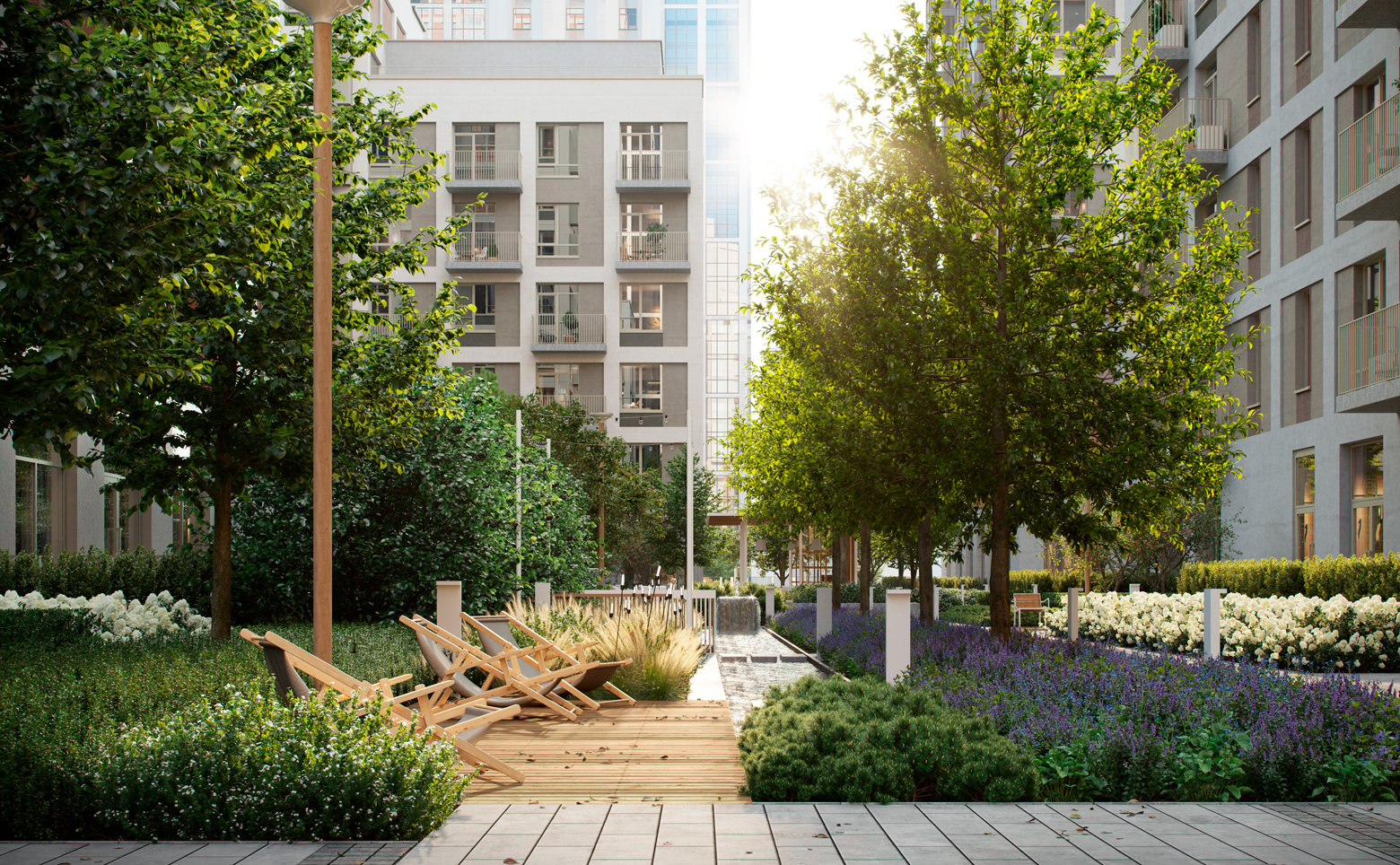 Газон, кустарники и многолетники, взрослые деревья создают комфортный микроклимат и дополняют ощущение нахождения в природной зоне у озера, а не в центре Новосибирска. Растения подберём по календарю цветения, чтобы пространство круглый год оставалось красивым. Все дворы оборудуем системой автополива.