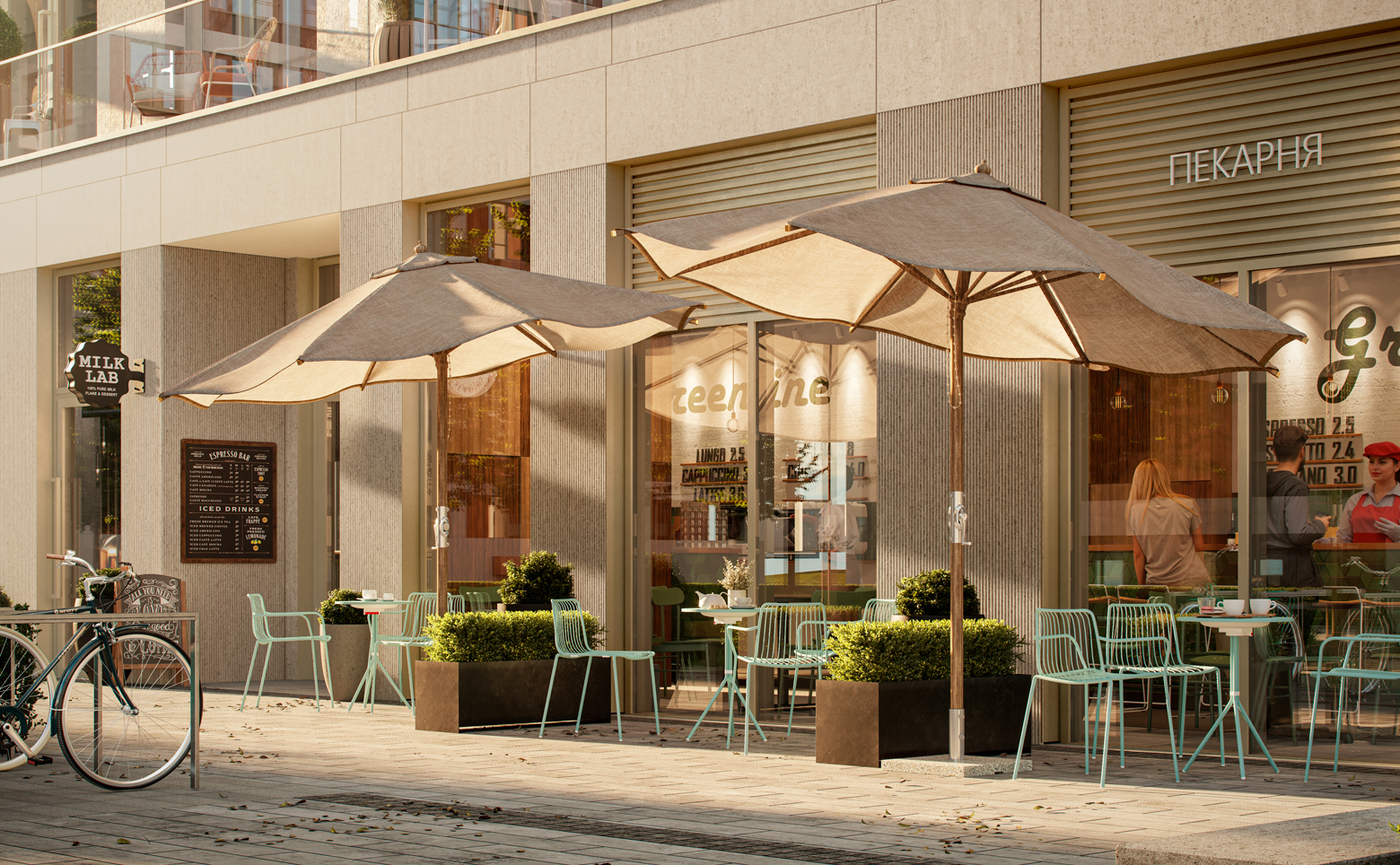 На первых этажах мы спроектировали продуманную и неслучайную коммерческую инфраструктуру. Здесь всё на своём месте — ресторан и кофейня, минимаркет и винотека, двухуровневые салон красоты и фитнес-студия для индивидуальных и групповых занятий, ателье и химчистка.