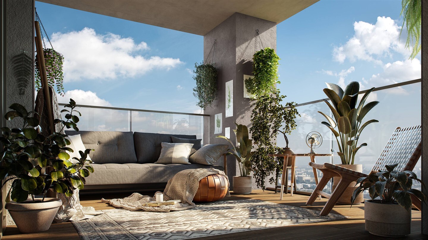 На верхних и нижних этажах дома мы спроектировали квартиры с террасами. Они позволяют разнообразить сценарии городской жизни и больше времени проводить на свежем воздухе. Террасы на первых этажах выходят во двор. Они окружены живой изгородью, которая формирует приватное пространство для отдыха. Летом здесь можно выставлять садовую мебель, читать книги, наблюдать за играющим во дворе ребенком, а зимой — лепить снеговиков и наряжать ёлку. Видовые угловые террасы в башнях идеально подойдут для того, чтобы разбить летний сад, установить детские качели или обустроить зону барбекю для встреч с друзьями. И всё это — наслаждаясь видом на озеро.