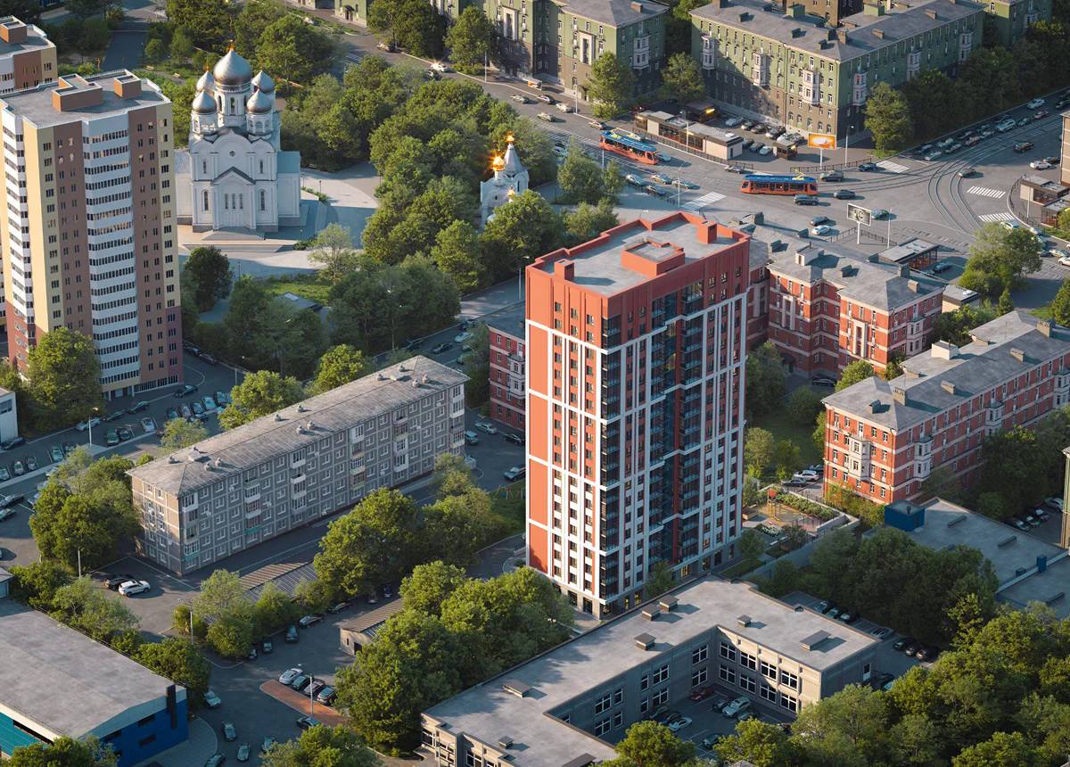 Жилой комплекс комфорт-класса представлен 17-этажным зданием, выполненным по кирпично-монолитной технологии. Дом оснащен пассажирским и грузовым лифтами.