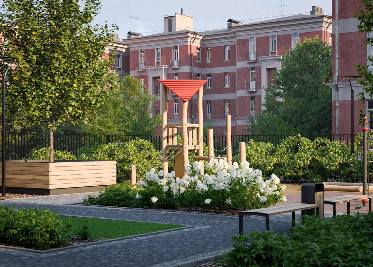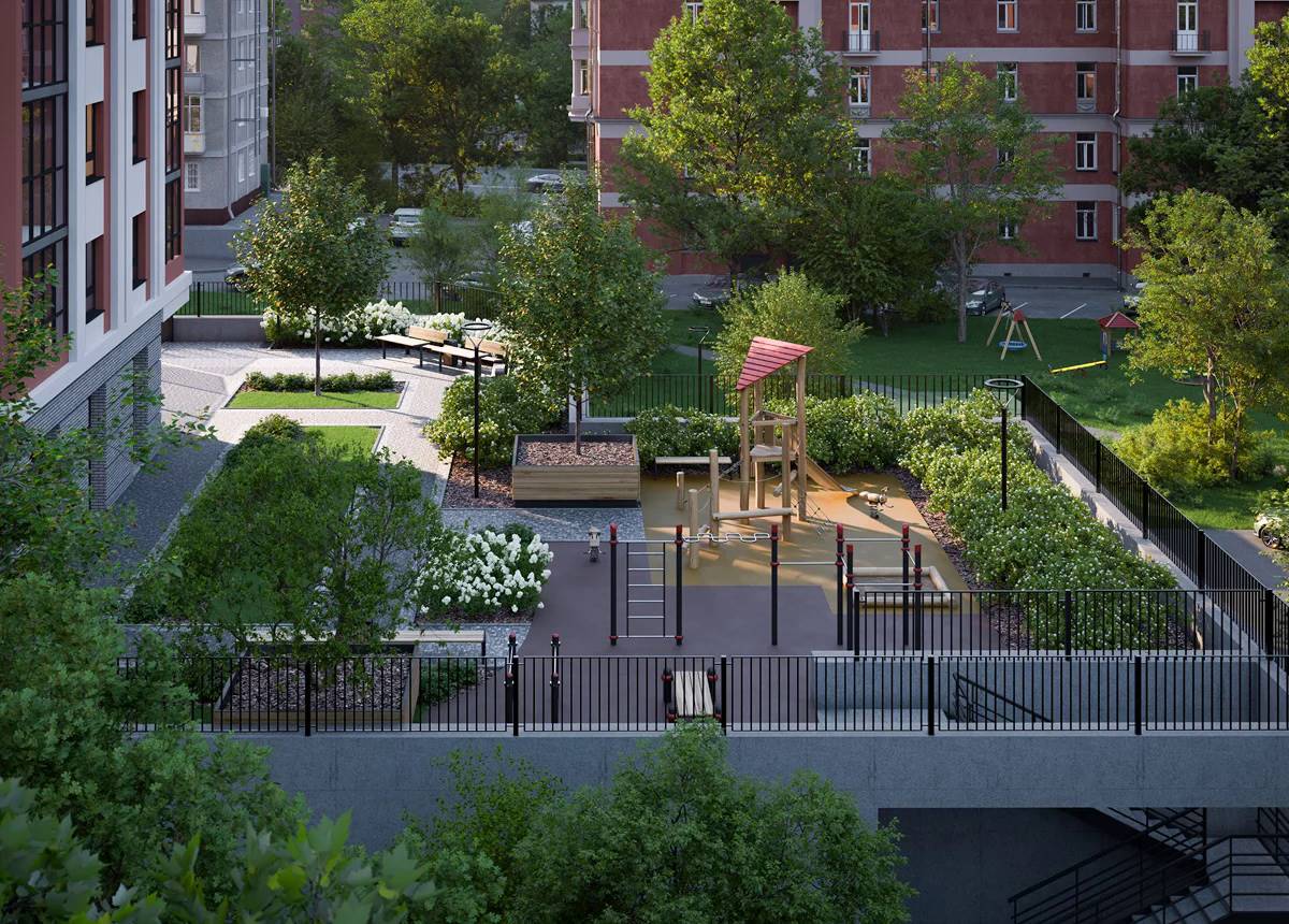 На территории жилого комплекса обустроены детская и спортивная площадки. Первый этаж здания отведен под коммерческие помещения. Для владельцев авто оборудован подземный паркинг.
