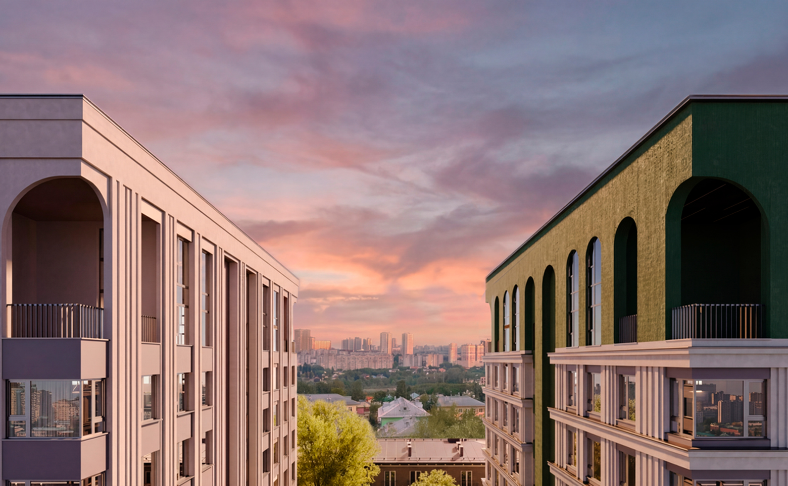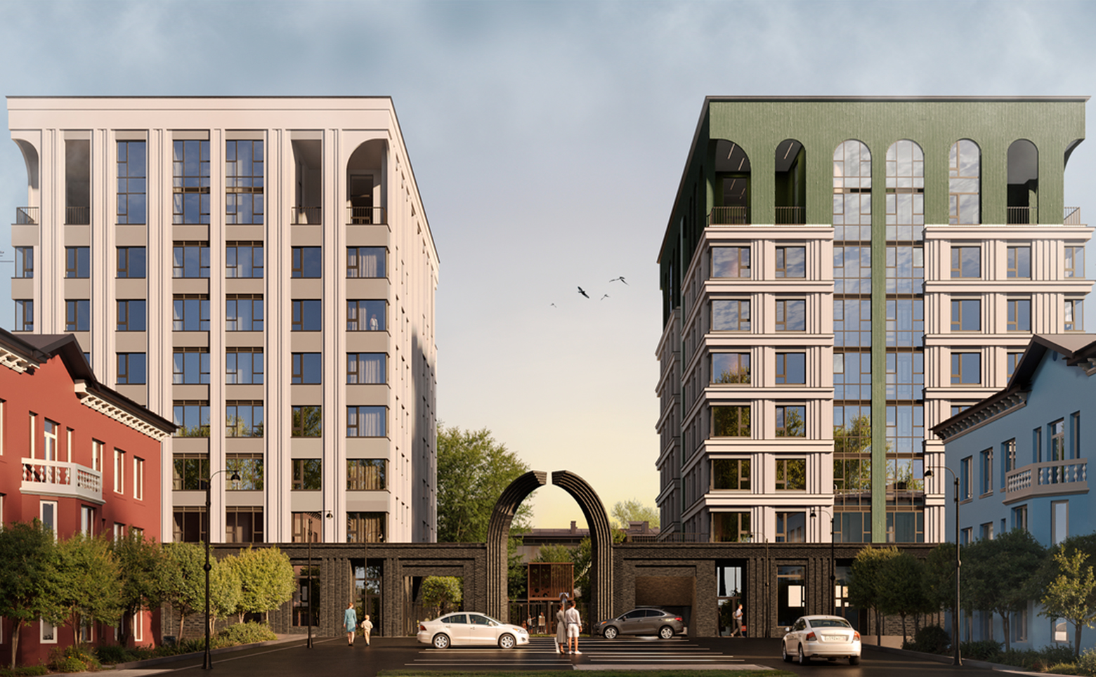 Жилой комплекс комфорт-класса состоит из 2 домов высотой 8 этажей. Здания возведены по кирпично-монолитной технологии с комбинированными фасадами и архитектурной подсветкой. Входные группы оформлены с дизайнерской отделкой. Установлены пассажирские и грузовые лифты. Для жителей оборудованы колясочные.